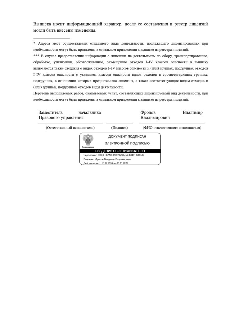 Выписка из реестра лицензий по состоянию на 22 января 2025 г.